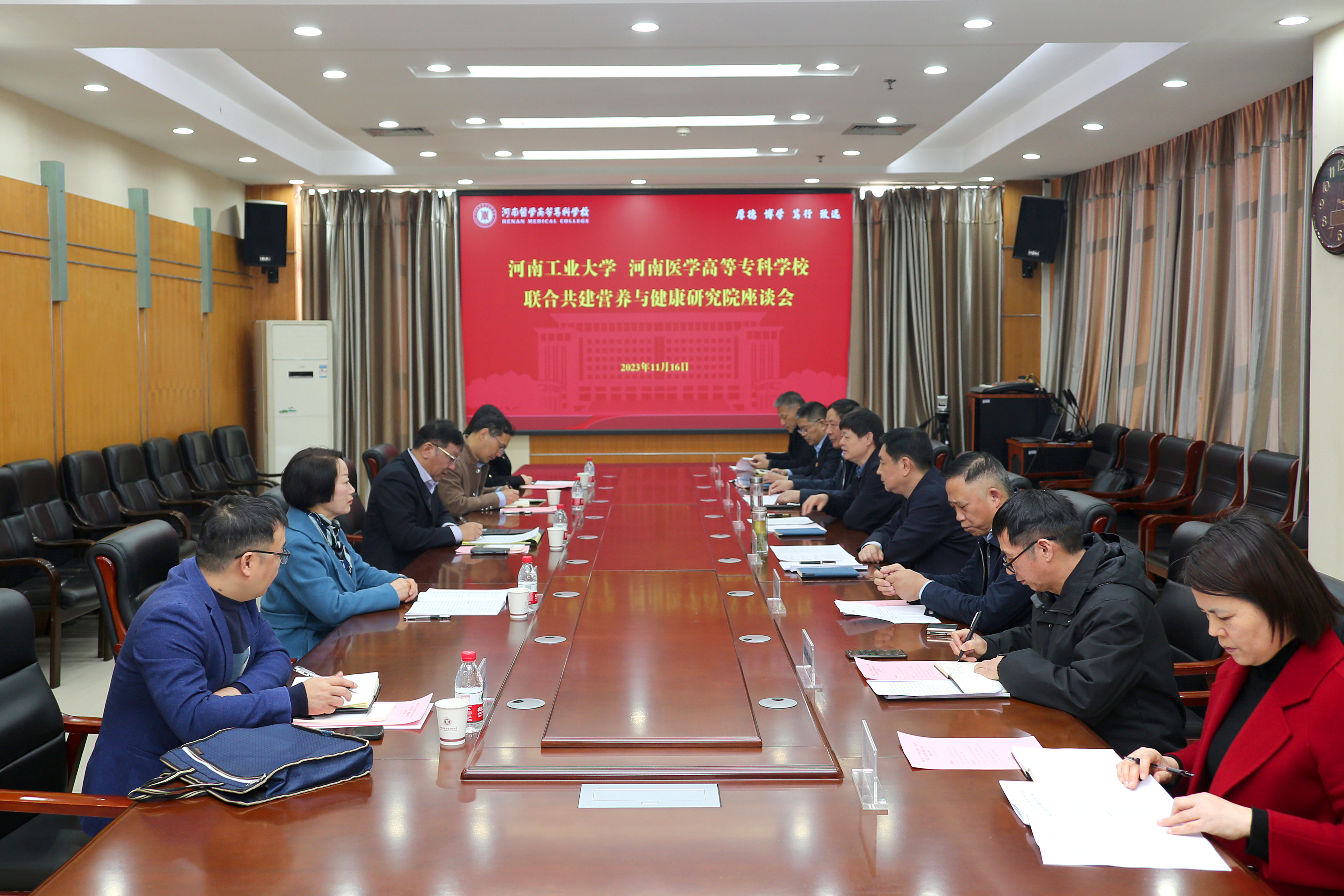 为了衍生学科新的增长点,推动乐鱼online(中国)“双一流”创建,11月16日,纪委书记张玉安带领学科建设办公室、纪委、粮油食品学院相关老师到河南医学高等专科乐鱼online(中国)商谈联合共建营养与健康研究院,河南医学高等专科乐鱼online(中国)党委书记花明、校长孙韬以及相关部门负责同志参加座谈会,会议由校长孙韬主持。