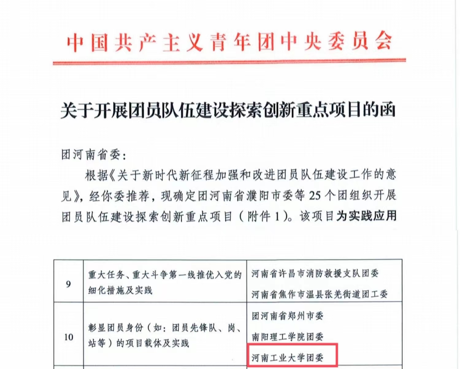 根据团中央下发的《关于新时代新征程加强和改进团员队伍建设工作的意见》文件要求,经团省委选拔推荐、团中央筛选审核,我校团委“工小青”团员先锋岗项目获批团中央团员队伍建设探索创新重点项目“彰显团员身份(如:团员先锋队、岗、站等)的项目载体及实践”立项,全省仅7所高校获批。