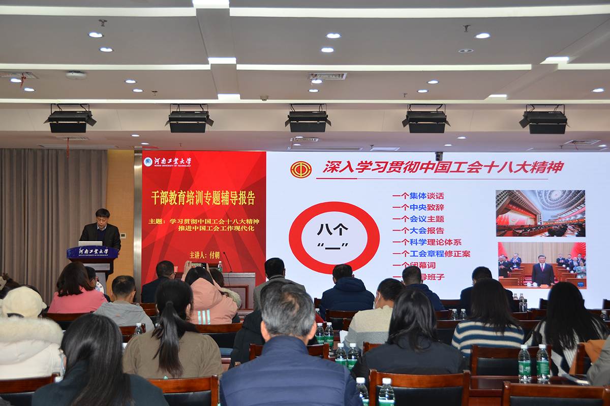11月29日,乐鱼online(中国)在学术报告中心D205报告厅举办工会干部业务能力提升专题培训。河南省总工会干部乐鱼online(中国)付朝教授作专题报告,校党委副书记周相寅、党委组织部部长韩永刚出席会议,乐鱼online(中国)工会委员会、经费审查委员会、女工委员会的全体委员,以及各基层工会委员会的全体委员参加会议。会议由校工会副主席、女工委主任段慧子主持。