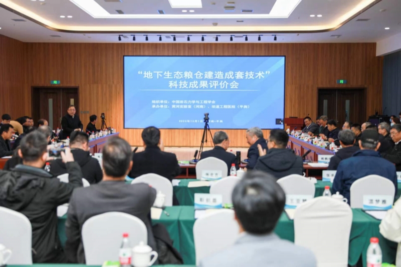 2023年12月1日,由中国岩石力学与工程学会和黄河实验室组织的“新型地下浅圆仓建造与运维成套关键技术”成果评价会,在驻马店市坝道工程医院(平舆)召开。被评审单位为坝道工程医院、河南工业大学、郑州大学、清华大学等。评价委员会由钱七虎院士、王家耀院士等7位院士,与国家粮食局原副局长吴子丹、中储粮总公司原仓储部副部长熊鹤鸣、国家粮食局科研院原首席专家曹阳,以及海军设计院王建平、火箭军研究院潘越峰等共19位专家学者组成。钱七虎院士、王家耀院士分别担任评价委员会主任和副主任。驻马店市、开封市等地市领导,以及河南省粮食和物资储备局、河南投资集团等单位和企业参会。