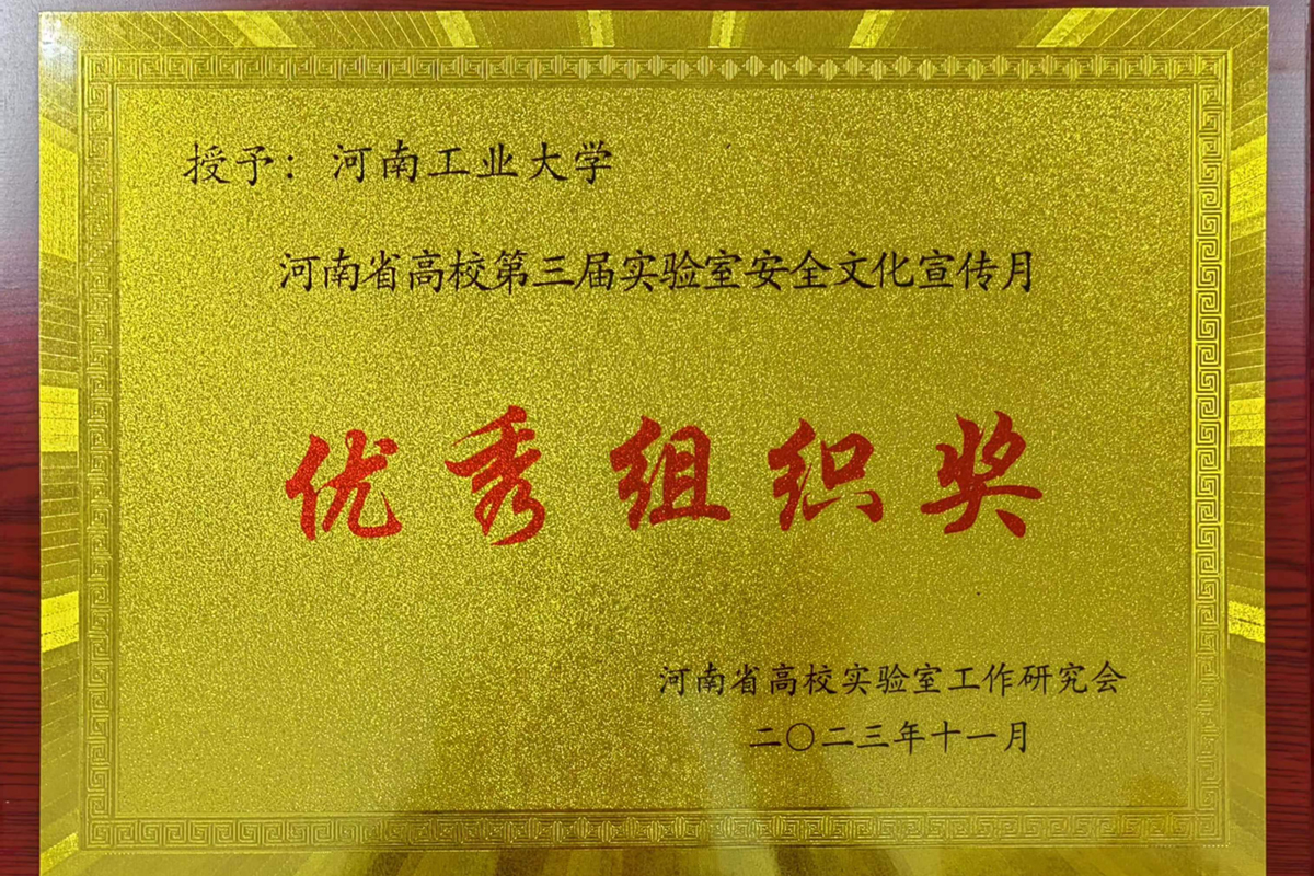 近日,“河南省高校第三届实验室安全文化宣传月”闭幕式暨颁奖仪式在南阳举行。我校获“河南省第三届高校实验室安全文化宣传月优秀组织奖”,粮油食品学院王华斌、化学化工学院李荣、材料科学与工程学院贾晓飞、国际教育学院严乐盈等9名同学分别荣获“2023年河南省高校实验室安全知识大赛”个人优秀奖。