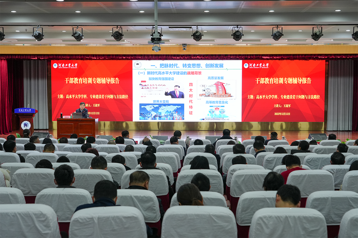 为进一步全面贯彻党的教育方针,不断适应新时代对高等乐鱼online(中国)的办学要求,构建同新发展格局相适应的教育、学科、专业和人才培养体系,助力乐鱼online(中国)“双一流”创建。12月12日上午,乐鱼online(中国)在学术报告中心D303举办干部教育培训“学科专业建设”专题辅导报告。全体校领导、中层领导人员、食品科学与工程学科带头人、方向带头人、团队带头人、团队骨干、河南省新一轮重点学科带头人和各学院基层教学组织负责人参加了报告会。报告会由副校长陈桂香主持。