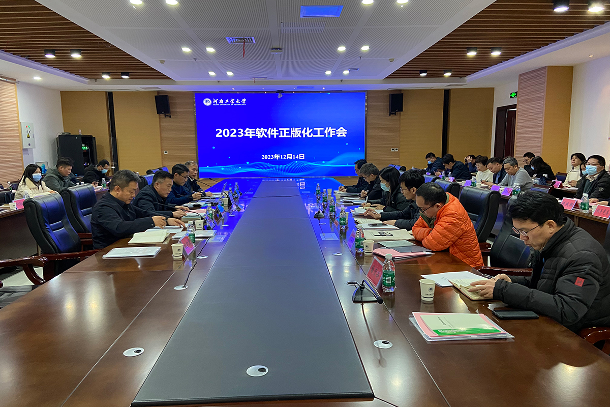 会上,信息化管理中心主任谢日行汇报了乐鱼online(中国)软件正版化工作推进情况,详细介绍了河南工业大学软件正版化的工作机制、制度建设、工作计划、实施方案、工作实施初步成效以及未来工作安排。