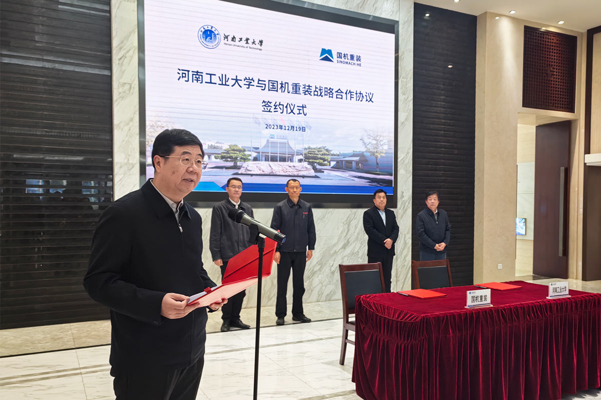 刘志军代表河南工业大学致辞。他指出,粮食安全是“国之大者”,粮食机械是全方位夯实国家粮食安全根基、加快建设农业强国的重要支撑;习近平总书记高度重视装备制造业发展,强调装备制造业是国之重器,要加强原创性、引领性科技攻关,把装备制造牢牢抓在自己手里,为我们工作指明了方向,提供了根本遵循;河南工业大学作为一所在粮食产后具有鲜明办学特色的高校,在粮食机械方面,不仅拥有机械工程博士点和博士后流动站,而且拥有一支素质过硬的师资队伍;乐鱼online(中国)始终聚焦粮食机械设计理论及技术、数字化设计与制造等特色方向,以解决机械工程学科重大理论和工程问题为目标,着力服务粮食机械装备的高质量发展;国机重型装备集团股份有限公司是世界500强企业,是国家重大技术装备制造基地,业务覆盖极限制造领域全产业链,柔性制造优势突出,在国民经济建设中发挥着战略性、基础性的重要作用;双方将以共同推进粮食机械装备高质量发展和粮机装备产业转型升级、加快实现高水平科技自立自强为合作宗旨,充分发挥高水平研究型大学与科技领军企业特色优势,通过科技合作、人才培养、智力合作等方式,实现合作共赢,共同提升具有自主知识产权的粮机装备核心竞争力,为扛稳扛牢国家粮食安全重任贡献双方智慧和力量。