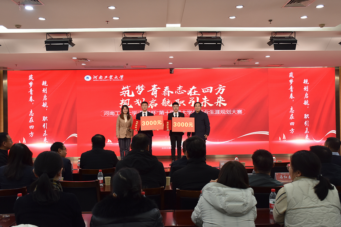 决赛分为选手个人展示、评委提问、选手答辩、评委打分等环节,经过激烈的角逐,最终评选出成长赛道和就业赛道各一等奖1名、二等奖2名、三等奖3名,优秀奖4名。郑州大学职业发展教育研究所所长王献玲、益海嘉里周口事业群人力总监王艳蝶分别对成长赛道和就业赛道选手表现进行了现场点评。现场为粮食和物质储备学院苏柯瑞、土木工程学院李远宏等20名获奖选手颁发荣誉证书和奖金,为粮油食品学院、土木工程学院、机电工程学院等7个学院颁发优秀组织奖。