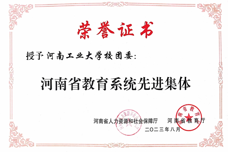 近日,河南省人力资源和社会保障厅、河南省教育厅联合下发《关于表彰河南省教育系统先进集体和先进个人的决定》,我校团委荣获“河南省教育系统先进集体”荣誉称号。