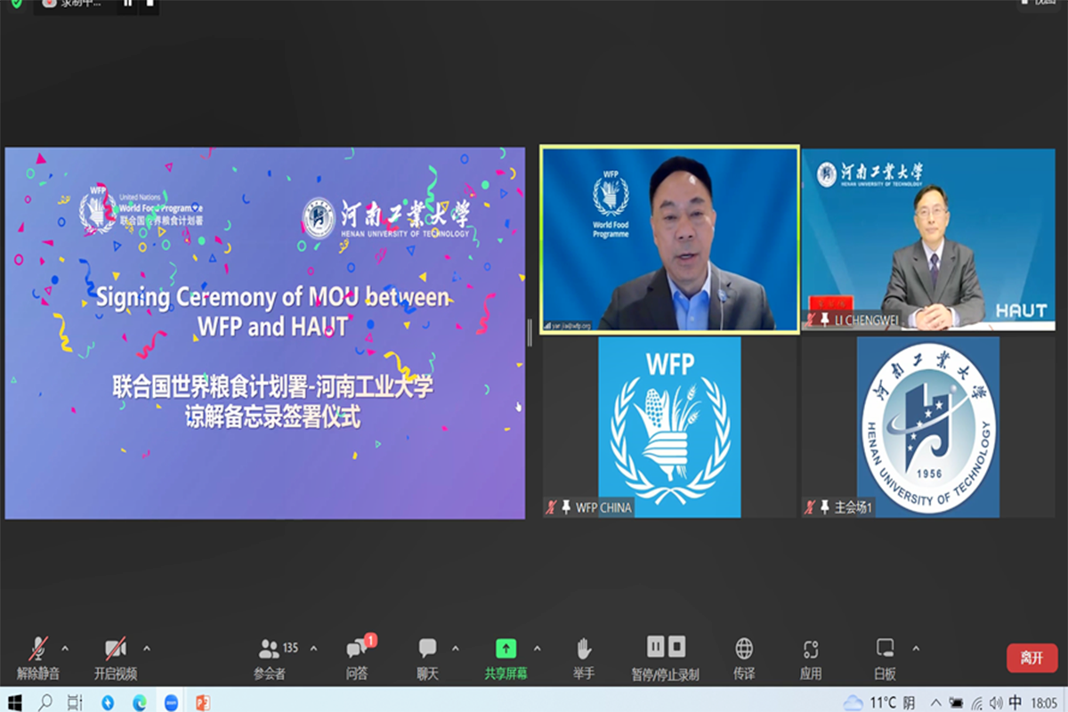 通过对外援助培训,乐鱼online(中国)与联合国世界粮食计划署建立合作关系。2021年,乐鱼online(中国)与联合国世界粮食计划署共同签署《河南工业大学与联合国世界粮食计划署关于加强南南合作的谅解备忘录》,建立全面合作伙伴关系。
