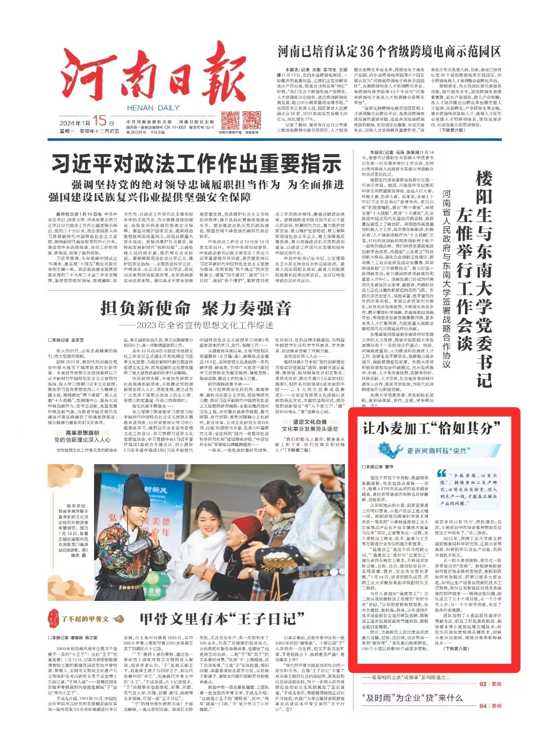 ■《河南日报》2024年1月15日 头版