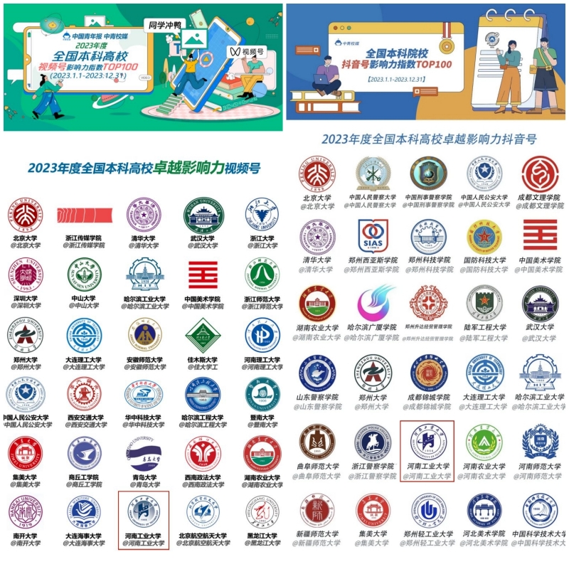 会上,发布了2023年度全国高校视频号、抖音号影响力指数榜单,我校视频号、抖音号均入选卓越影响力名单(Top 30)。