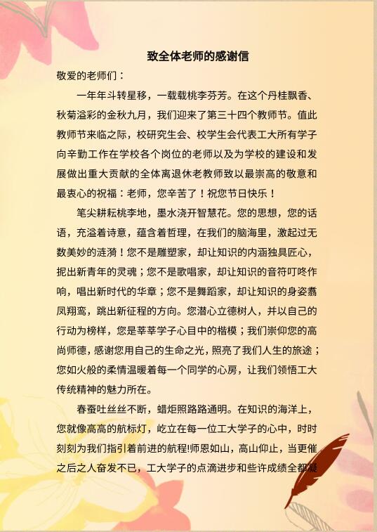 校研究生会、校学生会致全体老师的感谢信