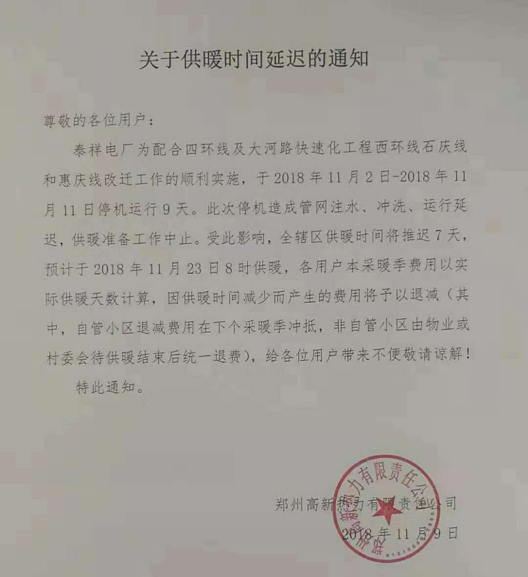 附:高新区热力公司相关通知