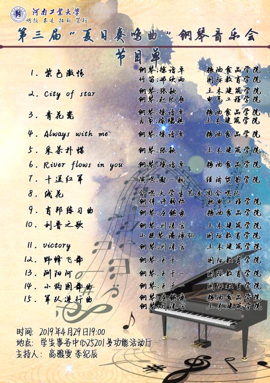 河南工业大学第三届“夏日奏鸣曲”钢琴音乐会预告