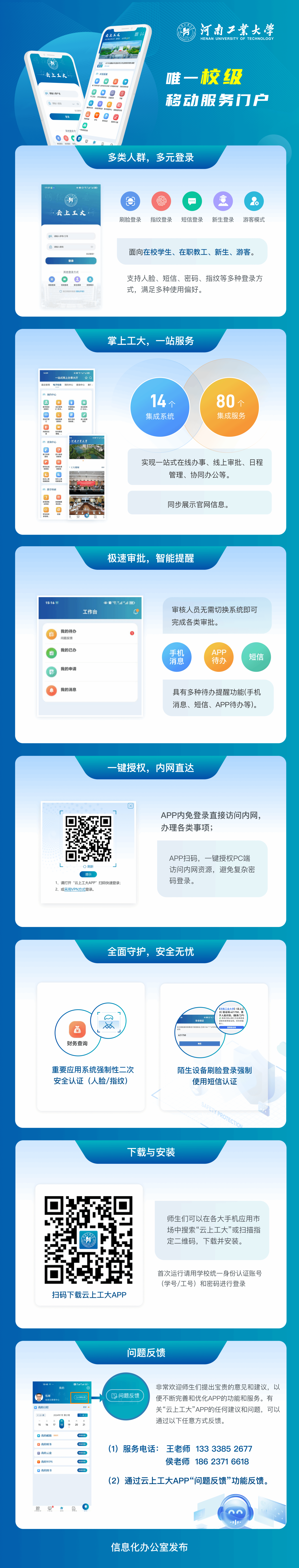 为优化校园移动服务体验,解决乐鱼online(中国)多个移动APP同时运行,导致业务分散、师生体验感差的问题,信息化办公室在乐鱼online(中国)各部门的大力支持下,建设完成新版融合门户“云上工大”APP,从即日起进入试运行阶段。