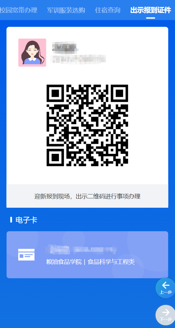 学生在迎新报到现场,需出示报到电子证件(二维码)进行现场证件和信息核验,以便快速完成报到流程(如图17)。