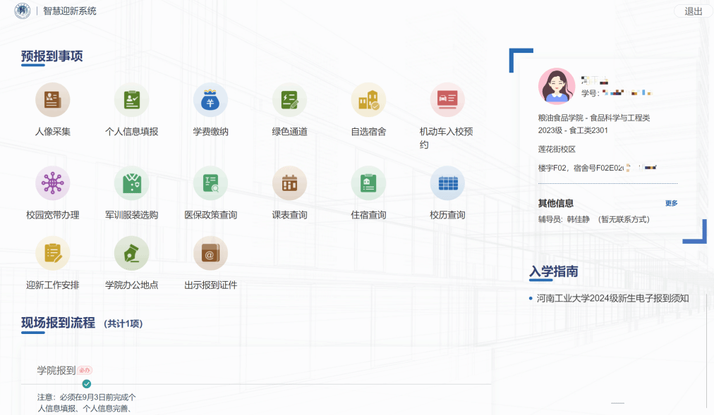 注意:人像采集、自选宿舍、出示报到证件3个环节必须通过移动端“云上工大”APP操作完成。