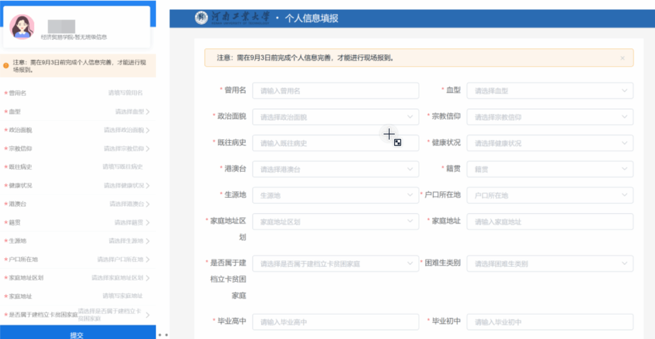 图6 移动端和电脑端的个人信息填报界面
