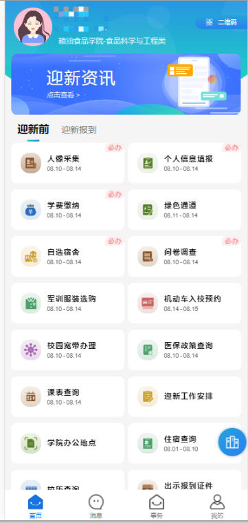 图4移动端迎新系统主界面