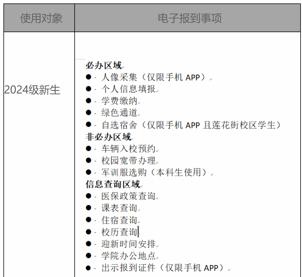 新生电子报到相关事项如下表所示。