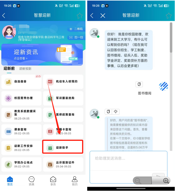 迎新助手采用AI智能问答的形式帮助学生全面深入了解乐鱼online(中国)、提前做好入学准备,快速融入大学生活。
