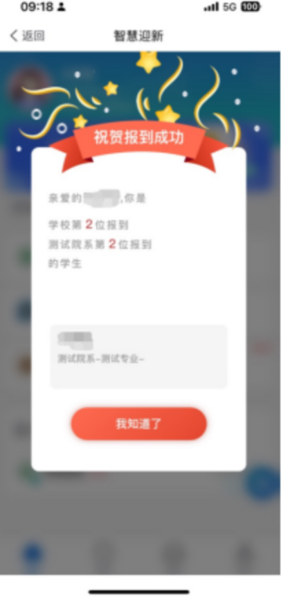 核验成功后,在智慧迎新首页会展示该生报到排名(如图18)。