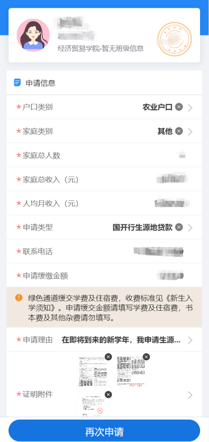 (4)表单填写完成后,点击“提交申请”,等待校方进行审核;