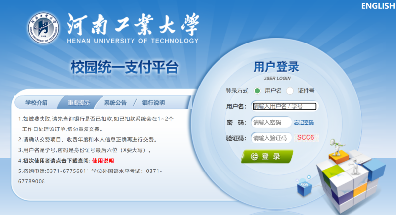 学生可通过智慧迎新系统,点击学费缴纳服务,登录校园统一支付平台(移动端和电脑端均可,如图7),通过微信或支付宝,缴纳学费、住宿费、医保费、教材费;并可查询、下载学宿费电子缴费票据。