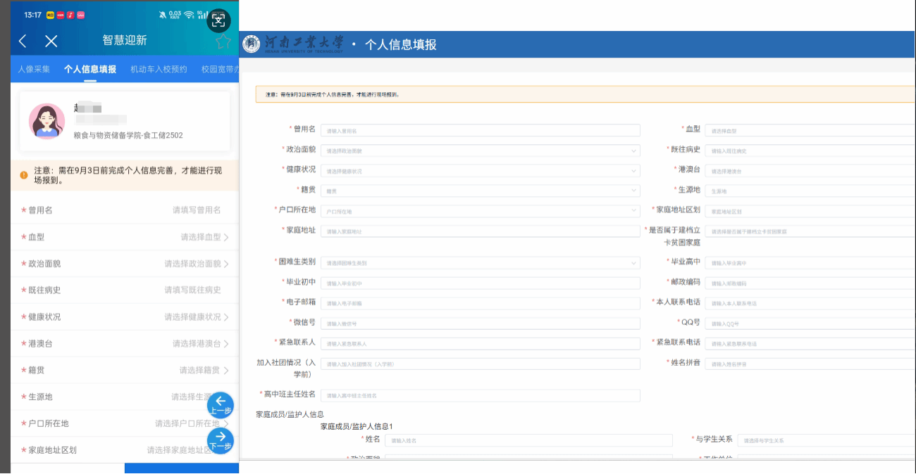 注意:人像采集、自选宿舍、出示报到证件3个环节必须通过移动端“云上工大”APP操作完成。
