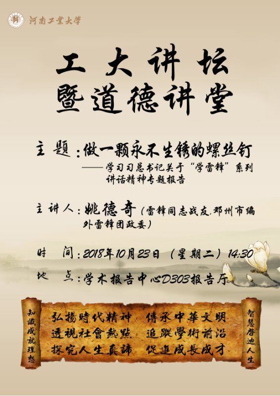 主题:“做一颗永不生锈的螺丝钉”——学习习总书记关于“学雷锋”系列讲话精神专题报告
