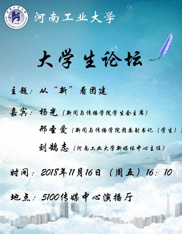 刘鹄志,现担任河南工业大学新媒体中心主任,团支部团体曾于在2017年被共青团中央评为全国活力团支部。曾获得“河南工业大学第十一届团日活动创意联赛中获服务型”一等奖、“优秀共青团干部”、“共青团新媒体工作先进个人”等荣誉。