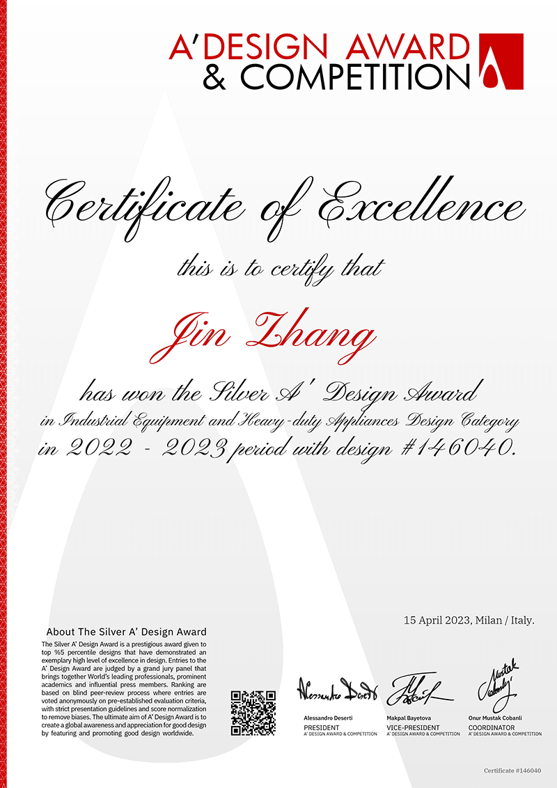 近日,享誉全球的设计赛事2022-2023意大利 A' Design Award 已于近日公布了最终的获奖名单,经由200余名国际专业人士组成的评审团的严格筛选,河南工业大学设计艺术学院文化与产品设计工作室张瑾同学的参选作品《Phinix—Fire testing equipment series》荣获此次工业仪器及重型工业产品类银奖,该设计是由校内导师孔雪清,企业导师钟诚指导,设计作品已被编号并收藏于世界设计联盟。