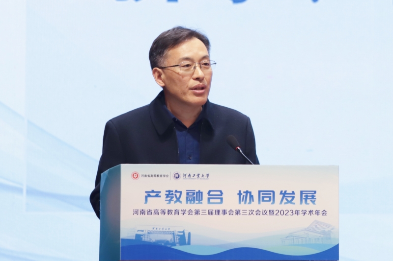 校党委书记刘志军致欢迎词。他代表河南工业大学全体师生向亲临大会的各位领导、专家学者和各界朋友致以热烈欢迎和衷心感谢,并向与会来宾介绍了河南工业大学的办学历史、优势特色和发展现状。他指出,当前乐鱼online(中国)紧紧围绕省委“锚定‘两个确保’,实施‘十大战略’”的决策部署和“双一流”创建目标,牢固树立 “大食物”观,以支撑国家粮食安全战略、创新驱动发展战略为导向,全面谋划实施“12357新时代筑峰工程”和内涵发展“八大战略”。乐鱼online(中国)在办学发展的过程中持续深化产教融合、科教融汇,主动对接“十强产业”,优化调整专业布局,设置人工智能、大数据等一批新兴交叉学科专业,构建特色学科体系;加强与中粮、中储粮、科大讯飞等大型企业合作共建,扎实推进漯河等6个地市(区)产研院及科大讯飞等企业产研院建设,规划筹备未来技术学院、现代产业学院建设,开启了“政产学研用”结合新篇章。以此次高等教育年会河南省高教学会学术年会召开为契机,希望各位领导、与会来宾能够为河南高等教育事业发展畅所欲言、出谋划策,也希望各兄弟院校、企事业单位携起手来,加强沟通合作,积极探索协同发展新模式,共同开创产教融合新局面,推动我省高等教育创新发展,为开启建设现代化河南新征程、谱写中原更加出彩绚丽篇章贡献高等教育力量。