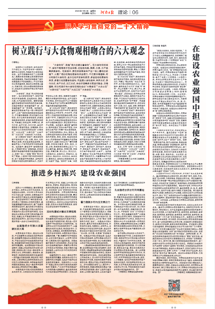 《河南日报》刊发链接:树立践行与大食物观相吻合的六大观念