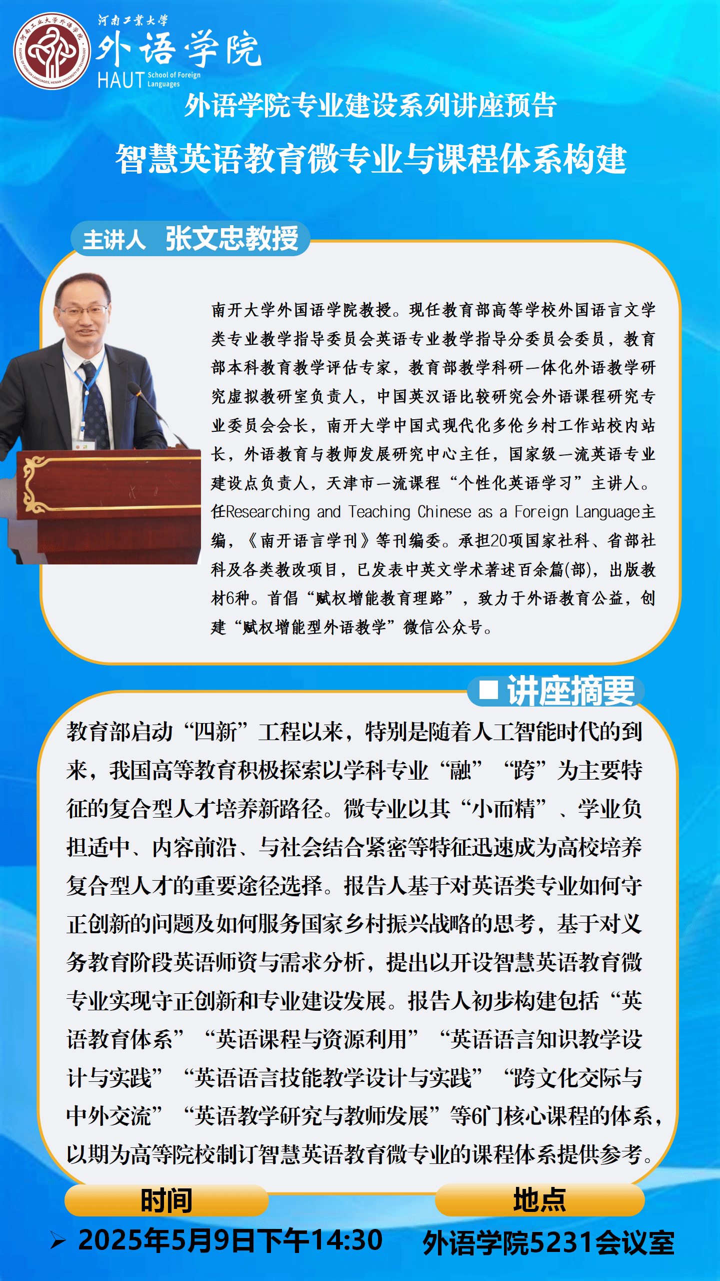 外语学院专业建设系列讲座预告:智慧英语教育微专业与课程体系构建