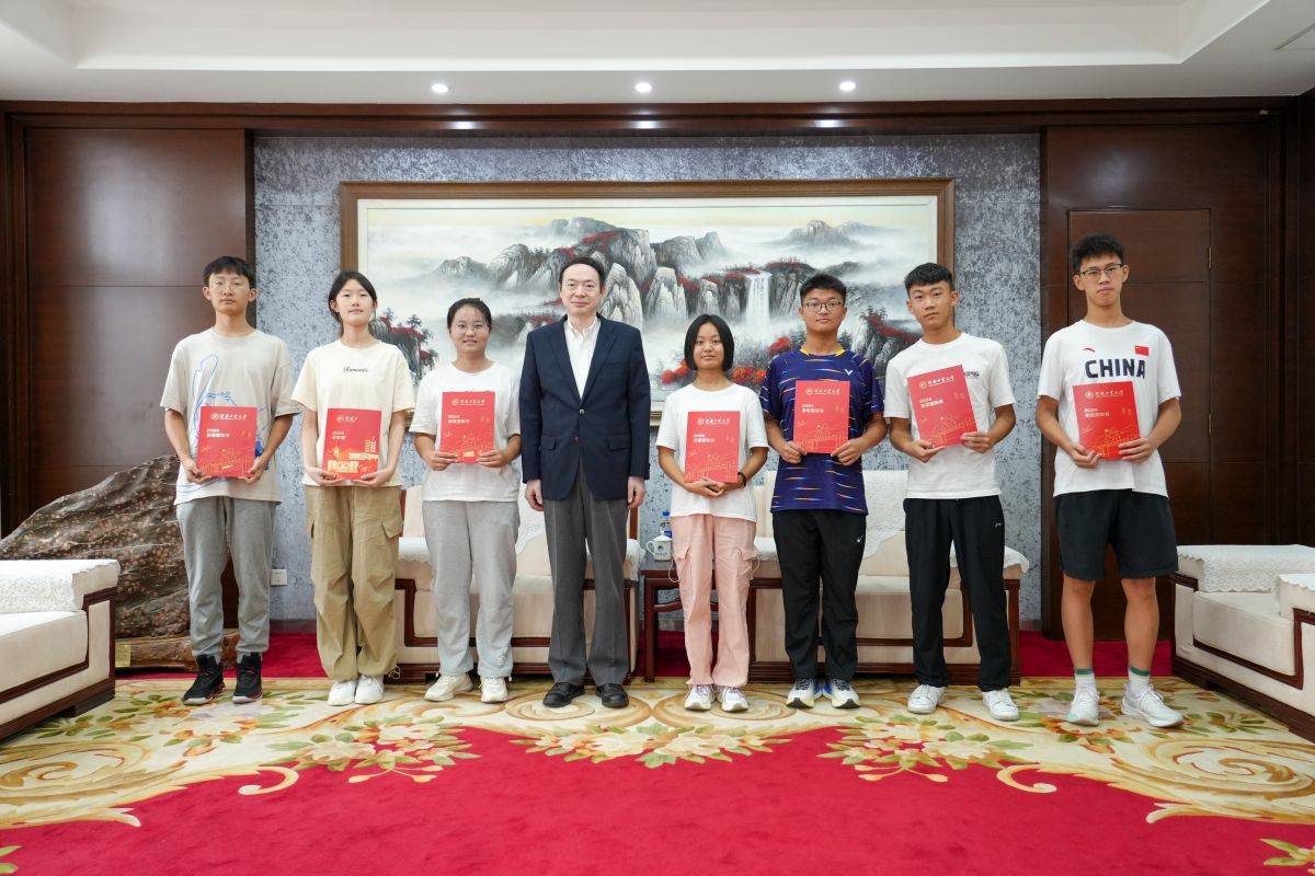 07.292024校长吴智深向2024级新生代表签发录取通知书7月29日,我校在莲花街校区行政楼举行2024级本科生代表录取通知书签发仪式。校长吴智深将亲笔签名的录取通知书颁发给7位新生代表,并与到场学生和家长亲切座谈交流。校... -