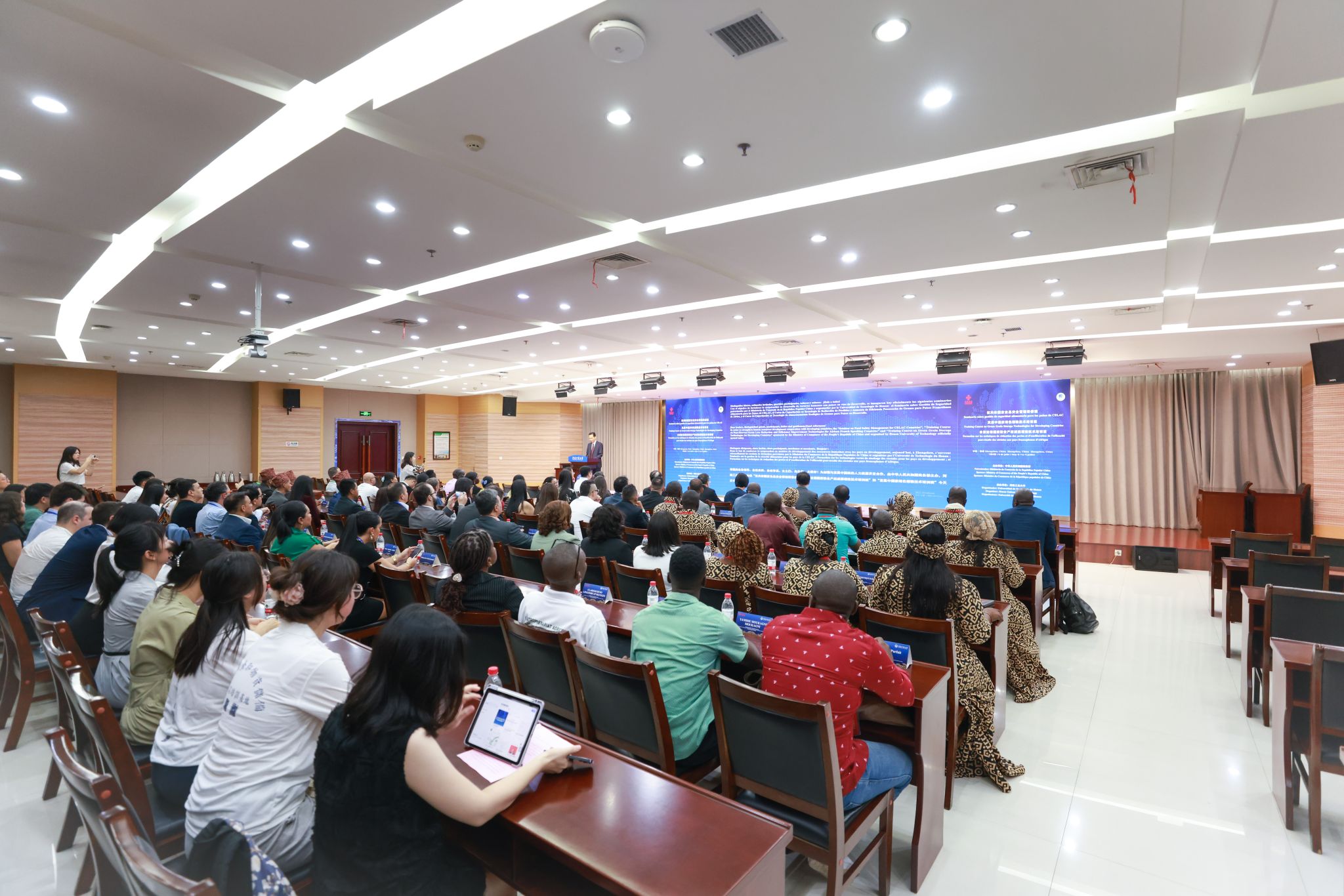 07.082025践行全球发展倡议 贡献中国智慧——我省首次举办三期粮食类援外培训联合开班仪式7月8日,一场汇聚全球智慧、共商粮食安全大计的盛会于“中原粮仓”河南郑州拉开帷幕。由中华人民共和国商务部主办、河南工业大学承办的“拉共体国家食品安全管理研修班... -