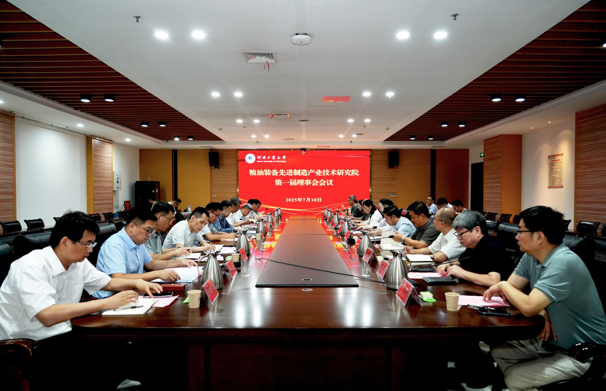 07.132025粮油装备先进制造产业技术研究院首届理事会会议召开7月10日上午,由河南工业大学与中粮科工股份有限公司共建的粮油装备先进制造产业技术研究院(以下简称“研究院”)首届理事会会议在河南工业大学莲花街校区举行。副校长...