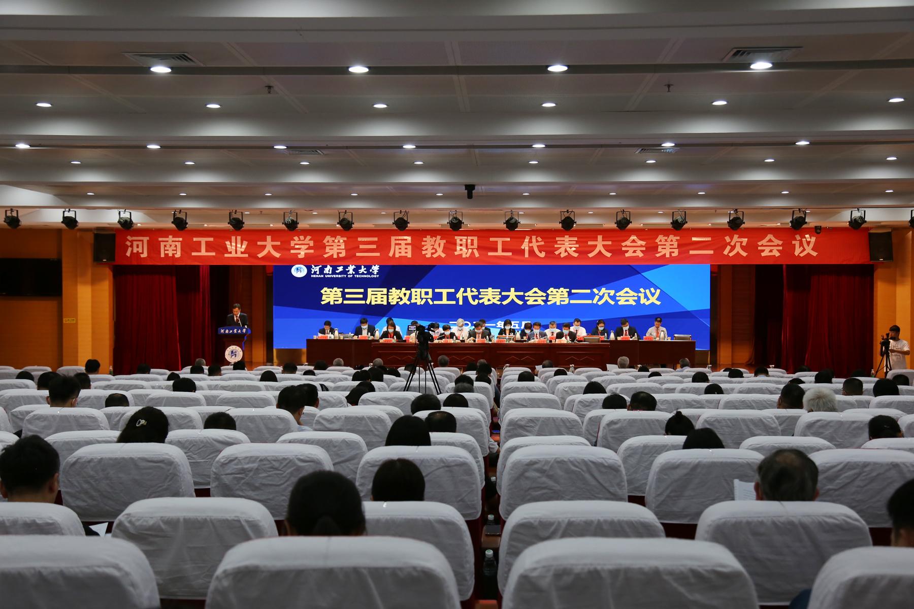 05.262021我校召开第三届教职工代表大会第二次会议5月25日上午,河南工业大学第三届教职工代表大会第二次会议在莲花街校区学术报告中心D303报告厅隆重举行。校党委书记张元、校长李成伟等主席团成员在主席台就座。197名... -